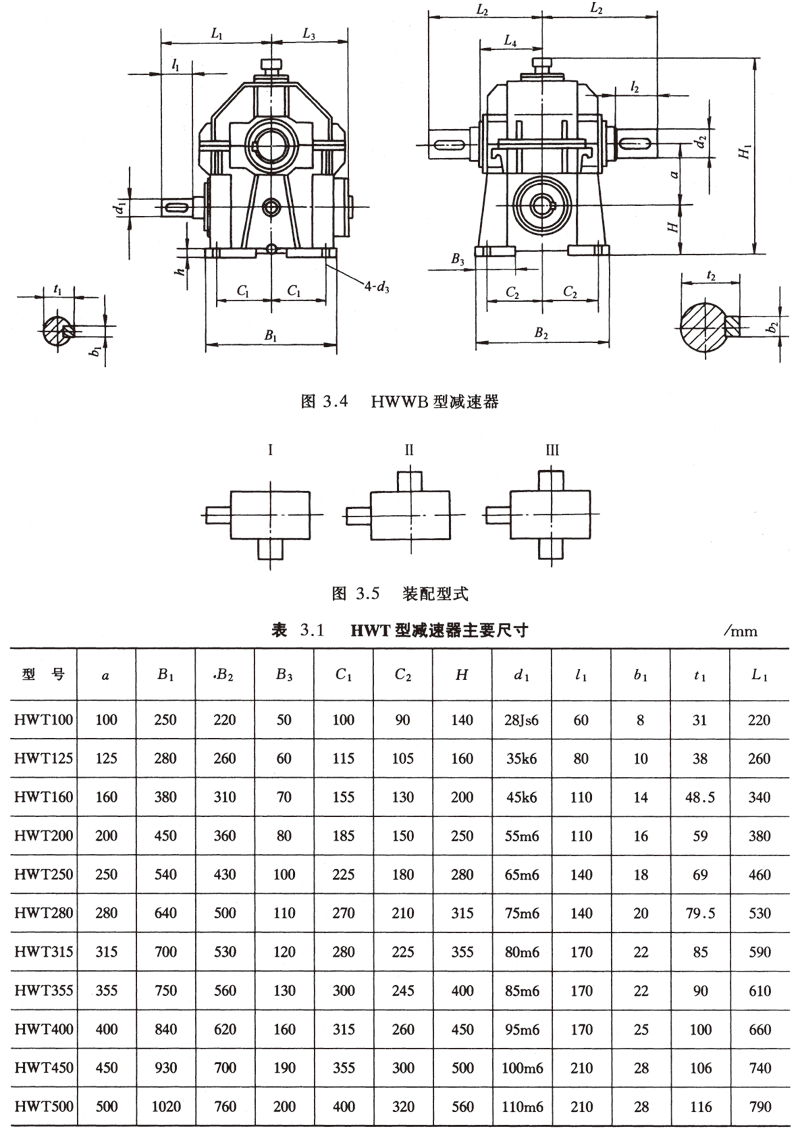 其中 T—上置蝸桿; B—下置蝸桿;W—焊接機(jī)體和機(jī)蓋,未注為鑄造結(jié)構(gòu)。