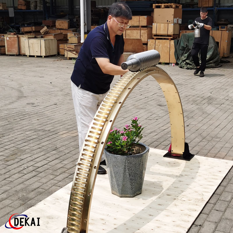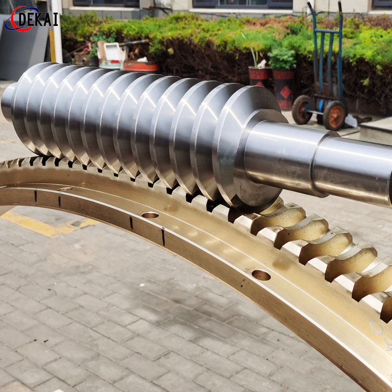德州德凱減速傳動機械有限公司采用雙蝸桿對消隙原理開發(fā)生產的精密蝸輪蝸桿副,主要用于大型機床工作臺的驅動,高精密分割器等無間隙圓周運動精確定位場合。該蝸輪副中心距最大可做到2000mm,單節(jié)速比可做到1-365同時不產生回程間隙。