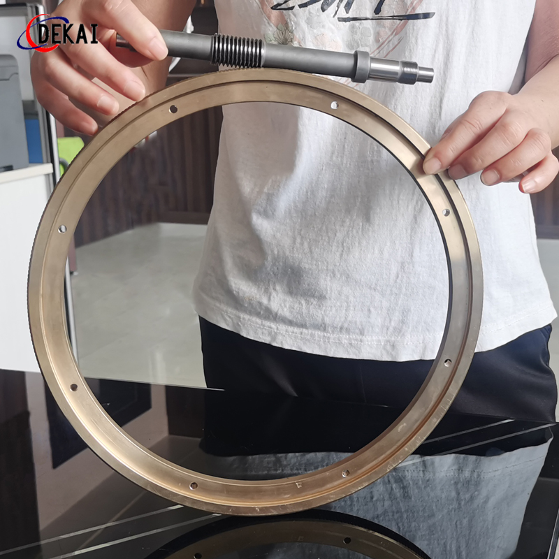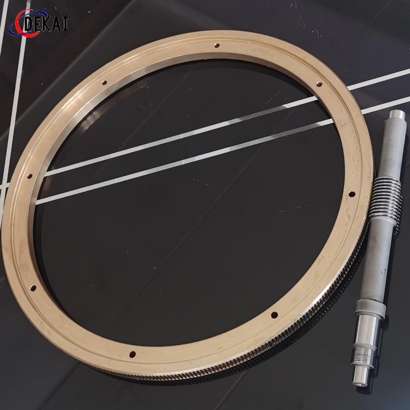 精密雙導程蝸桿副的優(yōu)點:分度精度高,側(cè)隙可調(diào)整至0.01~0.03Mmm;齒面接觸穩(wěn),不會改變中心距。調(diào)整標準,方便可靠。裝配靈活,裝配時,用調(diào)整環(huán)來獲得合適的嚙合側(cè)隙。使用中如果因為磨損導致傳動間隙增大,只要調(diào)整一下蝸桿的軸向位置,可以使蝸桿蝸輪傳動副恢復到原來的精度,不需要更換新的蝸桿,蝸輪,比較實用。蝸桿材質(zhì)采用40Cr,42CrMo、38CrMoAl合金鋼。蝸桿采用錫青銅ZCuSn10Pb1離心澆鑄,具有高強度耐磨性。
