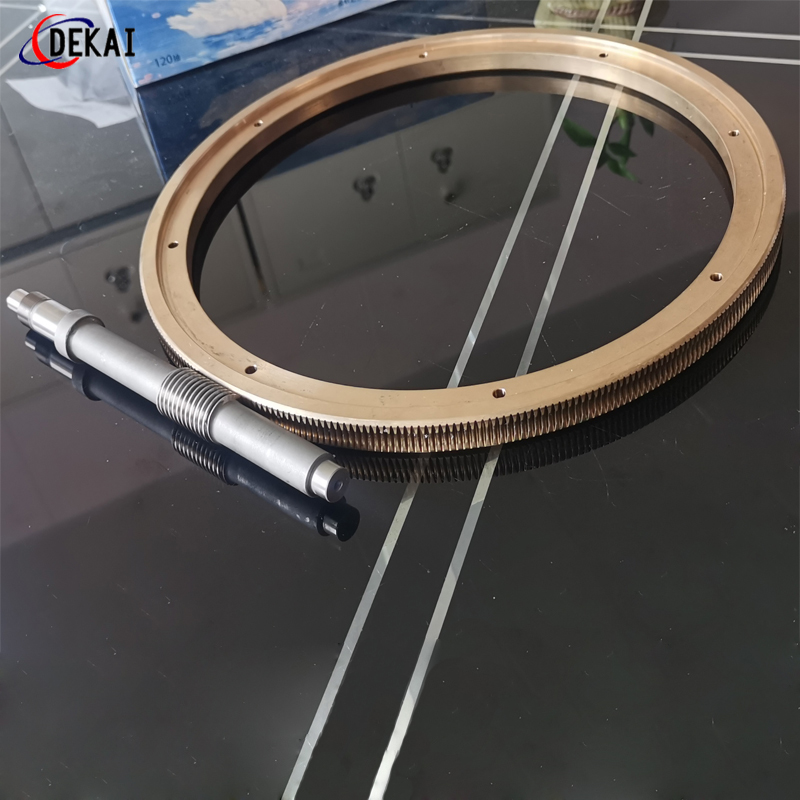 蝸輪系統(tǒng):材質(zhì):蝸輪特殊高強力鋁青銅合金;蝸桿:38CrMoAl合金鋼,正常化后滲碳HRC60以上。